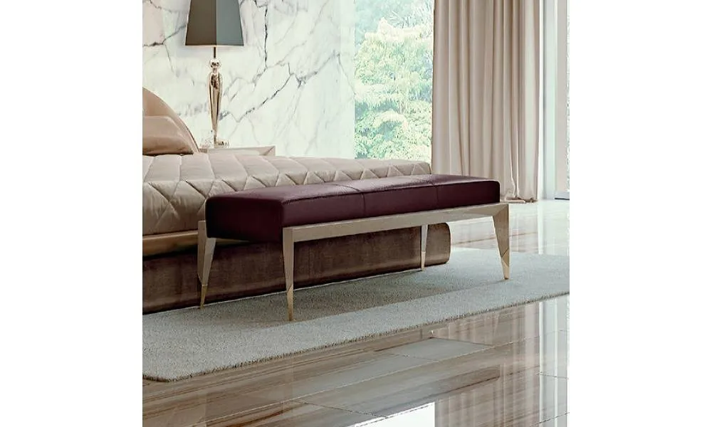 Банкетка с деревянной структурой и декором ручной работы. Обивка может быть выполнена из кожи или ткани разных видов.
