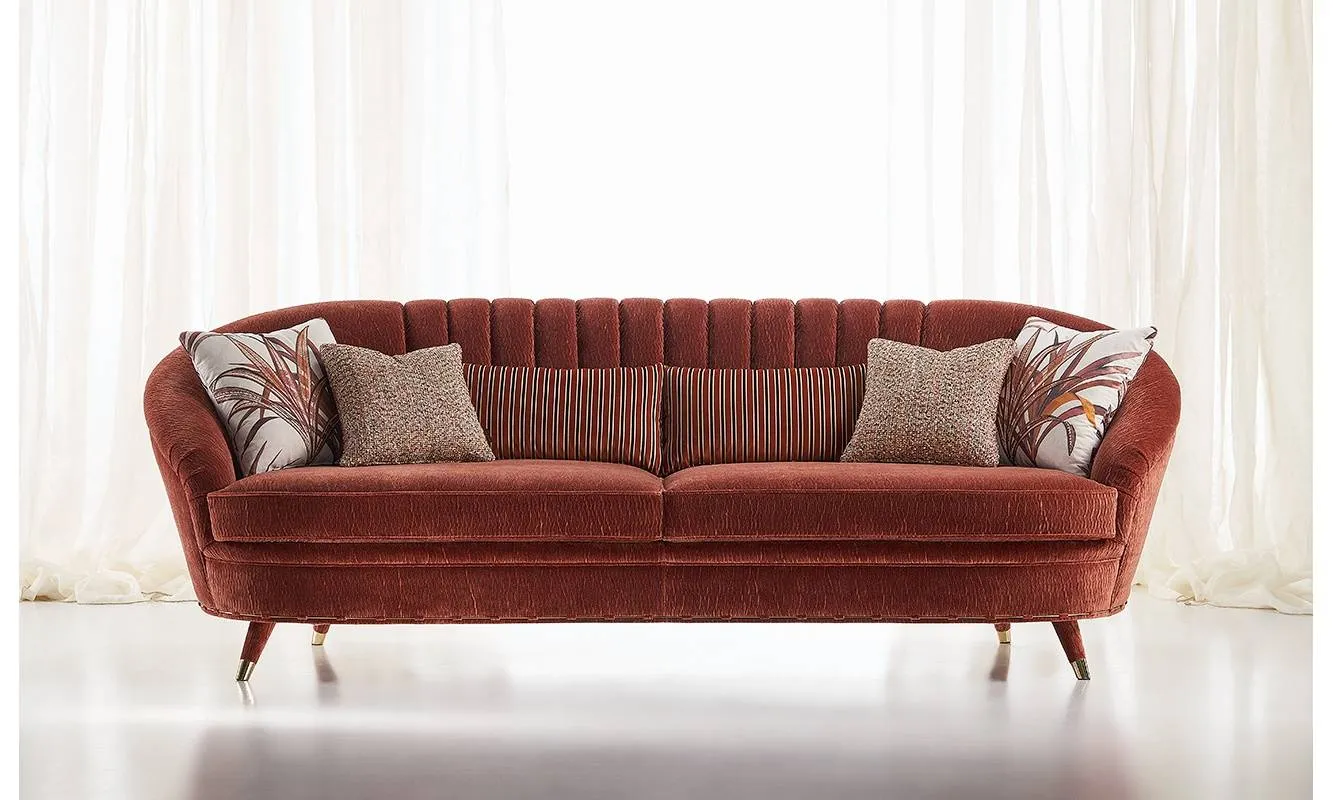Диван на ножках с металлическими наконечниками. Обивка может быть выполнена из ткани и кожи различных видов.