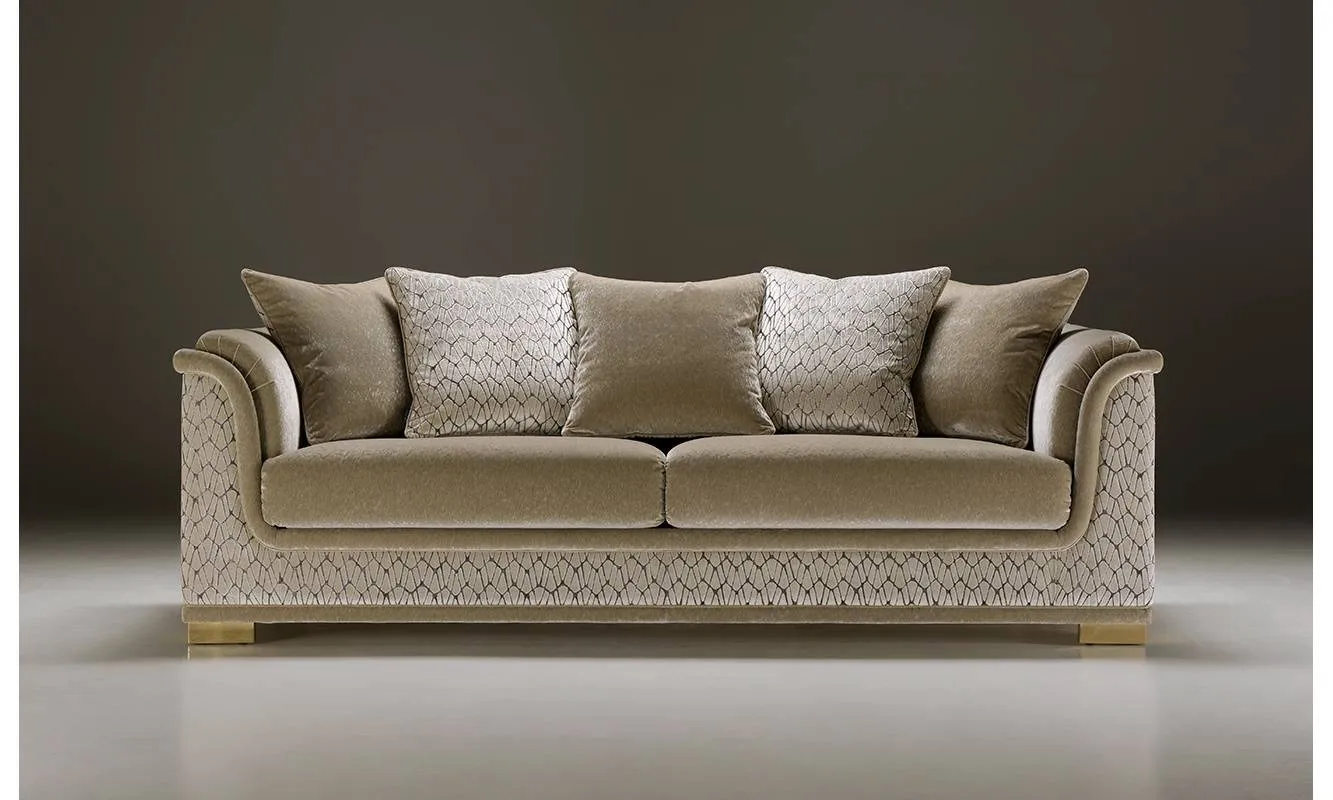 Диван на металлических ножках латунного оттенка. Обивка может быть выполнена из разных видов ткани и кожи. Так же возможен заказ дивана со спальным местом.