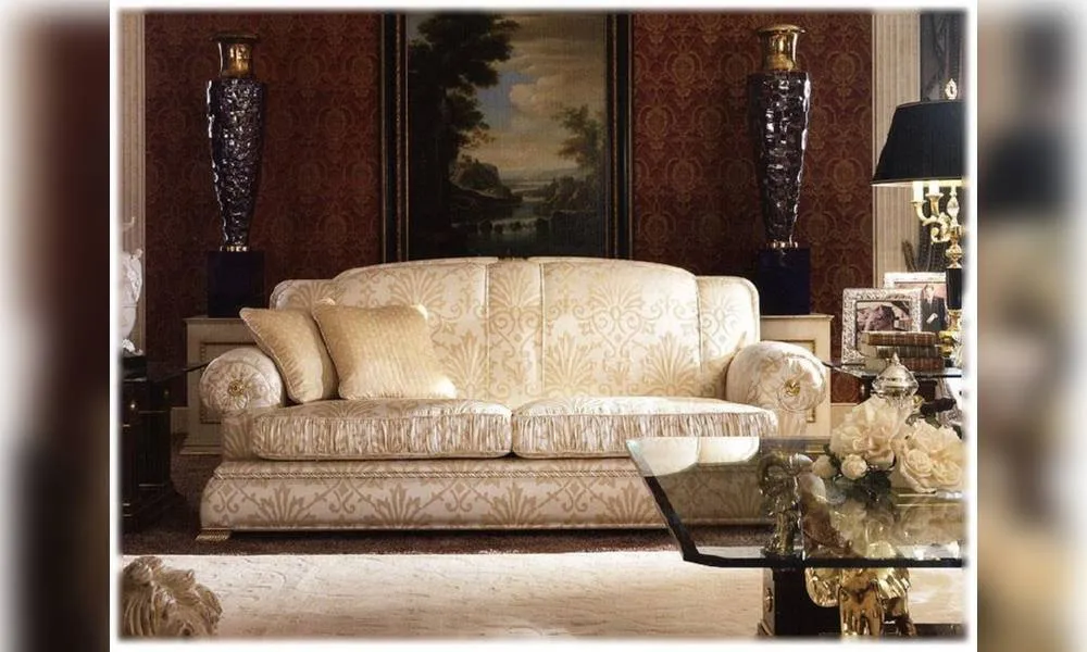 2-х местный диван. Латунные ножки. Наполнение - полиуретан. Декор ручной работы. Возможны другие цветовые варианты обивки.