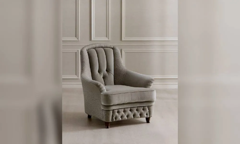 Кресло с деревянными ножками. Обито в технике капитоне. Возможны другие варианты отделки и обивки.