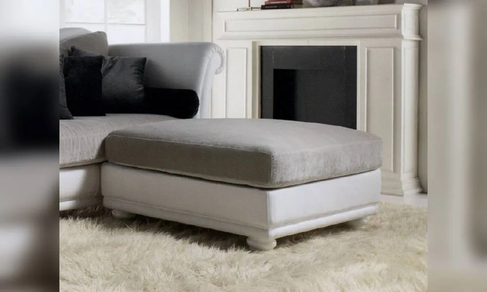 Квадратный пуф с мягким сидением. Возможны другие варианты отделки и обивки.