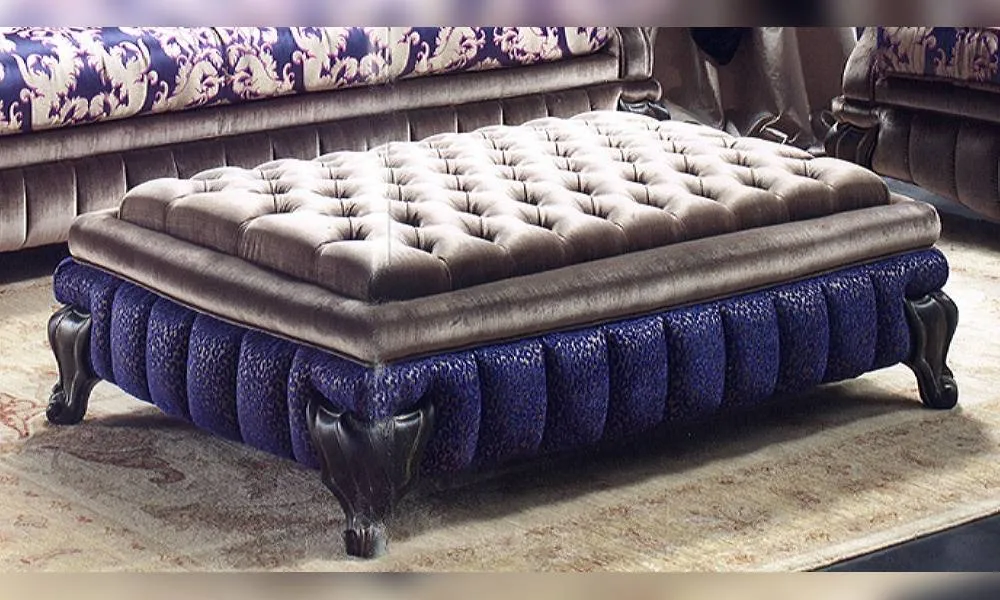 Прямоугольный пуф. Сидение обито в технике капитоне. Возможны другие варианты отделки и обивки, в том числе в ткани клиента.