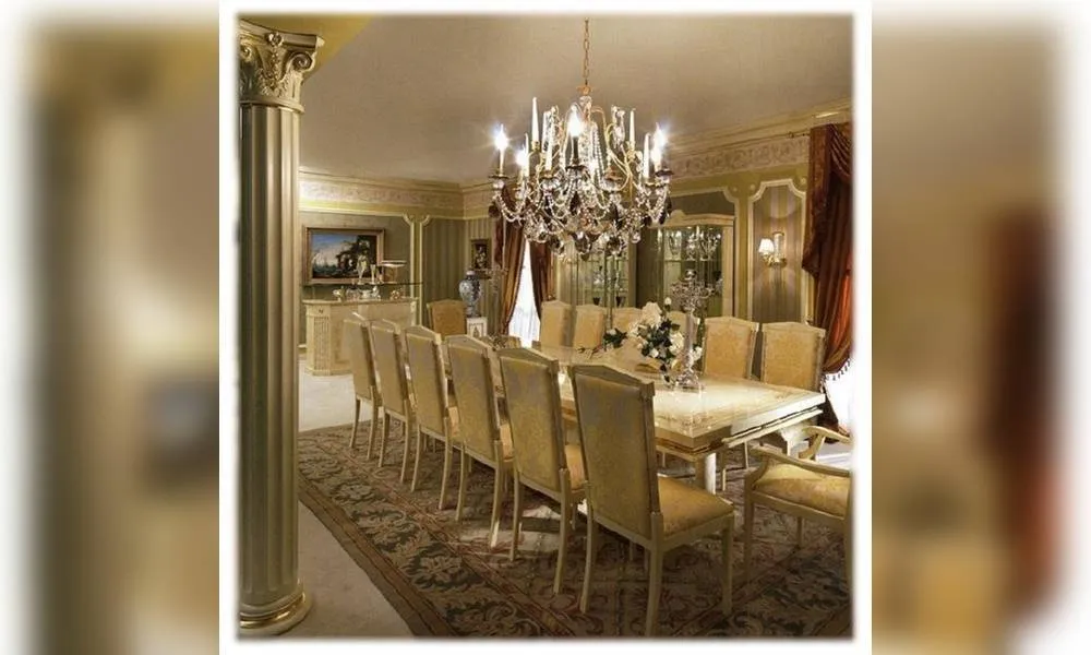Прямоугольный обеденный стол. Декор ручной работы. Возможны другие цветовые варианты отделки.