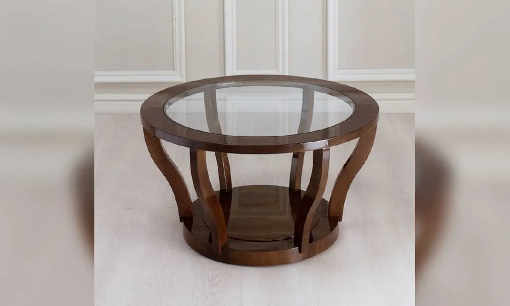 Круглый журнальный стол со стеклянной столешницей. Возможны другие варианты отделки.