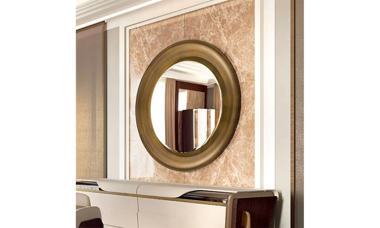 Зеркало со светодиодной подсветкой. Структура выполнена из сатинированного металла бронзового оттенка.